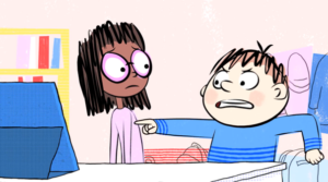 La série Tu dis, tu stoppes ! met en scène des enfants chargés de trouver des solutions pour lutter contre la violence, à travers un jeu vidéo. Dans cet épisode, Clara et Quentin sont confrontés à une cyberharceleuse qui dénigre et ridiculise Clara devant ses amis.